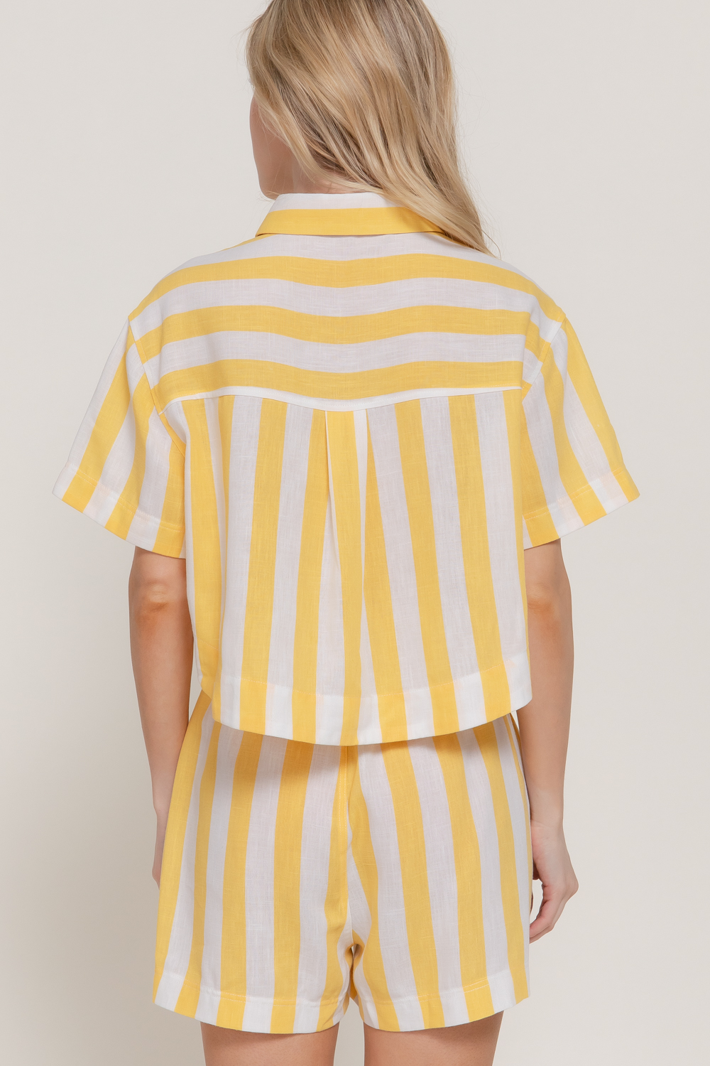 - SHORT SLEEVE SHIRT AND ELASTIC WAIST WIDE STRIPED LINEN EFFECT SHORTS SET